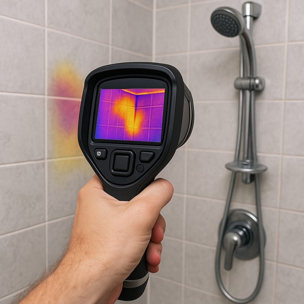Loose or stained grout lets water move through joints. Split silicone allows water to escape at wall-to-base junctions and within the shower recess. A punctured membrane under the shower base or tray can spread moisture into the substrate and cause structural damage. Our inspector checks corners, hob tops, the waste and the shower walls with leak detection tools. We record readings and map the wet area.